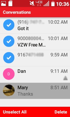 For tablet setup refer to the steps on setting up Verizon Messages Message on a tablet. Tap the 3-line navigation menu in the upper left corner. Unfortunately text messages can not be managed from the Verizon Cloud application. Scroll down and tap Settings. To select multiple messages tap additional messages to be deleted a checkmark appears to the left to mark messages for deletion. From the Cloud app. Media or Contacts 5Select the me.